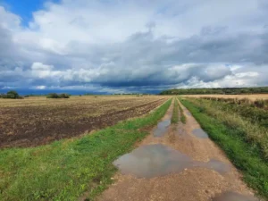 Our GPS had taken us onto small dirt track roads between farmer’s fields, in the middle of nowhere. In front of us popped a big tractor with a farmer saying we couldn’t go ahead…