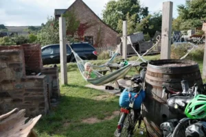 Finally, we found our way into the park and came across a cracking – albeit slightly strange – campsite, kitted out with wendy houses, rope swings, tree houses and hidden dens.
