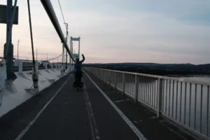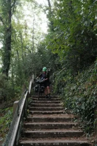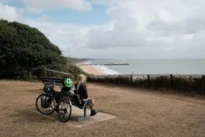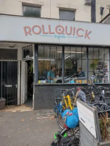 Now back in England, the landscape levelled out, as we cycled towards Bristol. But, as we got close to the edge of the city, disaster struck. The freehub on Sarah’s bike wheel broke, making it unrideable.