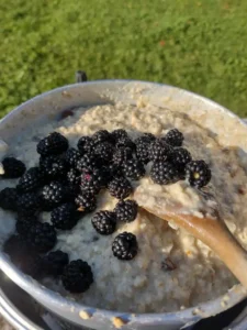 We had our first leisurely morning and decided to forget our 60-mile daily target and make sure we stayed injury-free. That morning we took our time, went and foraged some blackberries and ate porridge in the sunshine.