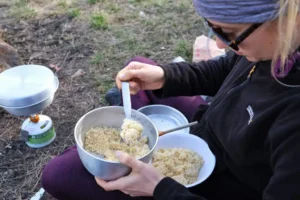 Another container tip: Buying things in bulk, like peanut butter, seeds and oats at home then decanting just the right amount into portable containers saves a whole lot of faffing in the wild, will avoid single-use plastics and food waste.